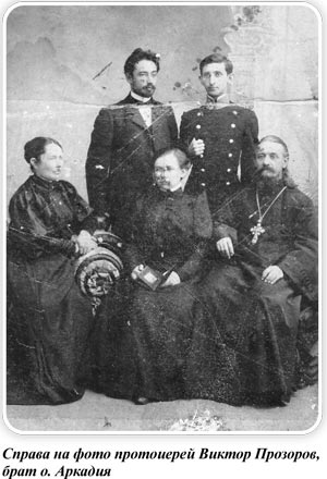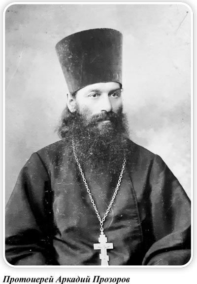 Окунаясь в ушедшую эпоху сильных духом и мужественных людей, можно найти немало образцов семейного благочестия, нерушимости веры, самопожертвования и величайшего подвига русского православного христианина в дни безбожного гонения и вероотступничества. Трагические для России события начала XX века, обернувшиеся падением монархии и гонениями на Русскую Православную Церковь, явились суровым испытанием несгибаемой веры, христианского терпения и твердости русского духа. Пересматривая старый фамильный архив, я вновь вглядываюсь в лица людей на выцветших фотографиях, чей жизненный путь стал для меня примером евангельского жития и образцом для подражания. Глубоко духовной можно назвать атмосферу дома, в котором царила живая вера каждого члена семьи священника. Такая семья просто обязана быть домашней церковью. Для священнослужителя семья – это первая, ближайшая паства, и он, прежде всего, в ней претворяет в жизнь евангельские истины во исполнение слов святого апостола: «Кто не умеет управлять собственным домом, тот будет ли пещись о Церкви Божией?» Несмотря на хранившиеся в семье старые фотографии и предметы быта, о служении и расстреле протоиерея Аркадия Петровича Прозорова, пращура по моему отцу, мы узнали из открытых источников на основе архивных исследований только в 2020 году. Протоиерей Аркадий Прозоров дольше всех был духовным наставником хабаровских кадет. Он прослужил в корпусе более восемнадцати лет. Воспитание будущих воинов в русской армии до 1917 года было тесно связано с христианским пониманием защиты Отечества как священного долга. Русская Православная Церковь считала первостепенной деятельность по духовному просвещению и нравственному укреплению военнослужащих, опираясь на евангельский постулат, что «нет больше той любви, аще кто положит душу свою за други своя» (Ин. 15:13). Именно на Руси появилось особое наименование для защитников Отчизны – «христолюбивое воинство».