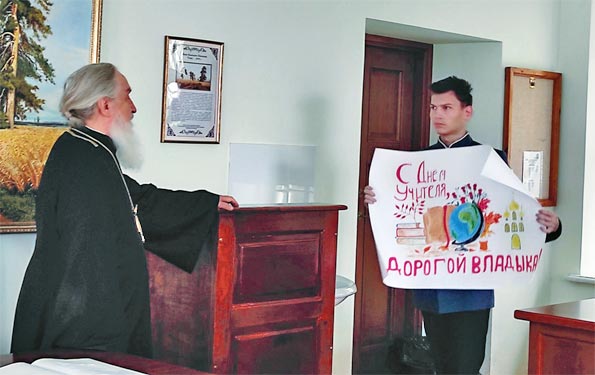 В первую субботу октября по традиции в Тобольской православной гимназии проводится День дублера: старшеклассники берут на себя роль учителей и дарят учителям настоящий праздник. Так было и в этом году! В фойе гимназии разместили поздравительные газеты, двери кабинетов украсили стихи о профессии учителя и уроках, об учениках и их благодарной памяти. Наибольший интерес вызвала у учащихся газета, на которой разместили фото учителей их школьной поры: все старались узнать знакомые черты в милых детских фото. А потом учителя-дублеры отправились в классы и проводили настоящие уроки, радовались, что ученики прилежны и послушны. Учитель Ольга Мерзлякова отметила: «Я поняла, что учителем быть очень трудно, что готовиться к урокам нужно не только ученикам, но и учителю. Еще надо заинтересовать детей, чтобы им хотелось выполнять задания на уроке. Я приобрела интересный и полезный опыт: справилась с волнением, и уроки принесли радость и мне, и моим ученицам». Учителя собрались в своем 12 «У» на линейку. Девочки поздравили их с праздником: разыграли фантастическую сценку о единственном ученике в гимназии и исполнили песню об учительской верности профессии, о любви к ученикам и школе. Открытки, сделанные своими руками, наполненные теплотой сердец и любовью, усилили атмосферу праздника. Традиционное общее фото – и звонок пригласил на урок! Ученики в 12 «У» очень прилежны, собраны и работоспособны. Помолившись, приступили к работе. Слово учителю – Дарине Малышевой: «Мне посчастливилось провести урок в самом озорном и шумном, но талантливом и искреннем 12 «У» классе. Мои ученики активно участвовали в мини-викторине по истории, весело решали математические и логические задачки, рисовали креативные и необычные цифры. С большим воодушевлением написали эссе-воспоминание о самом ярком событии школьной жизни. Творчеством и креативом наполнены стенгазеты: "Учитель – веселая профессия!" Завершился наш урок общими фотографиями и вручением цветов. Спасибо, ученики!» Юноши 10 и 11 классов поздравили с профессиональным праздником митрополита Тобольского и Тюменского Димитрия, своего мудрого наставника по основам православной веры. Они подготовили стенгазеты и в начале урока вручили их своему Учителю. Владыка поблагодарил ребят за поздравление и поделился своими мыслями об учительском труде и важности знаний. Вот таким получился праздничный субботний день. С праздником вас, наши учителя! Доброго здравия и благодарных учеников, интересных уроков и творческих открытий.