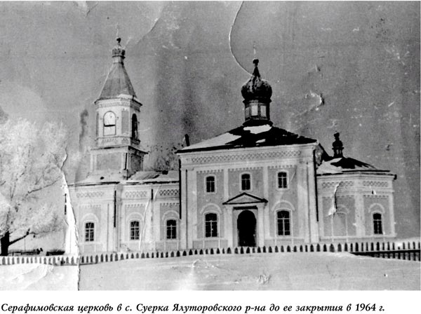 Распоряжение благочинного церквей Тюменского благочиния прот. Николая Магницкого (1961-1965) от 22.10.1963 о необходимости предоставлять в Тюменский горсовет сведения о количестве крещений, венчаний и отпеваний В соответствии с партийно-государственной установкой на искоренение религии наряду с усилением антирелигиозной пропаганды закрывались храмы и монастыри. В Тюменской области такое закрытие постигло Серафимовскую церковь села Суерка, о чем подробно изложено в статье протоиерея Алексия Сидоренко «Борьба органов советской власти Омской и Тюменской областей с православными в 1940-е – 1980-е годы». По словам автора, церковь эта продержалась в 1920-е и 1930-е годы, пережила войну, а вот рубеж 1960-х преодолеть не смогла.