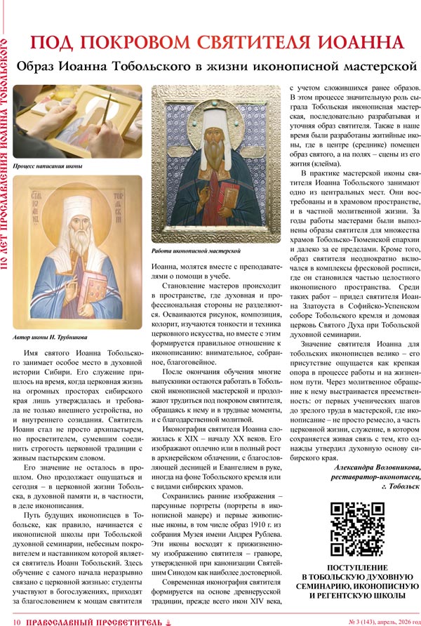 Образ Иоанна Тобольского в жизни иконописной мастерской