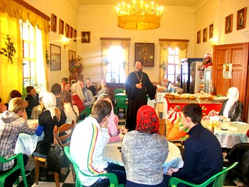 Началось все с общего сбора у стен Свято-Троицкого мужского монастыря, куда ребята съезжались из разных храмов города и района после Божественной литургии. После того, как приходская молодежь, а также студенты Тобольской духовной семинарии и Тюменского духовного училища разместились в трех комфортабельных автобусах, процессия двинулась во дворец спорта «Партиком». Руководство спортивного центра благотворительно предоставило участникам празднования дня св. Татианы ледовое поле и коньки для часового катания. Уровень мастерства конькобежцев весьма разнился: кто-то опытно выделывал на льду сложные фигуры, а кто-то неуверенно делал первые шаги. Более опытные помогали новичкам освоиться на льду, и всем было весело. Без падений, конечно, не обошлось, но, слава Богу, до травм дело не дошло. После физической разминки подошло время для разминки умственной: в духовно-просветительском центре при храме св. прав. Симеона Богоприимца участников ждала увлекательная интеллектуальная викторина «Что? Где? Когда?». Немного подкрепившись, все участники праздника разбились на несколько команд. Кроме приходских команд – например, команд Крестовоздвиженского храма, храма Михаила Архангела, храма в честь иконы Божией Матери «Целительница», храма Всех святых г. Тюмени, храма прихода во имя Илии Пророка п. Килки, в викторине также принимали участие команды от Тобольской духовной семинарии, Тюменского духовного училища и Тюменского отделения молодежного движения «Сибирь молодая православная». В состав компетентного жюри вошли председатель епархиального отдела по работе с детьми и молодежью иерей Иоанн Казанцев, руководитель отдела по работе с детьми и молодежью Тюменского благочиния иерей Сергий Альников и руководитель отдела традиционной православной культуры Тюменского благочиния иерей Евгений Сбитнев. После приветственного слова отца Иоанна и регистрации команд, интеллектуальная битва началась. Участников ждали 16 вопросов различной степени сложности на знание российской истории, культуры и православного вероучения. После подсчета правильных ответов, во время которого учащиеся Тюменского духовного училища под руководством иерея Евгения Сбитнева исполнили несколько песнопений, жюри огласило победителей конкурса: первое место заняла команда Тобольской духовной семинарии, второе – команда прихода храма Михаила Архангела, третье – команда прихода храма во имя Илии Пророка с. Килки. Призеры игры были награждены грамотами и сладкими подарками, а все участники получили утешительные призы. От лица всех участников хочется выразить благодарность организаторам праздника за такой интересный и насыщенный событиями день!