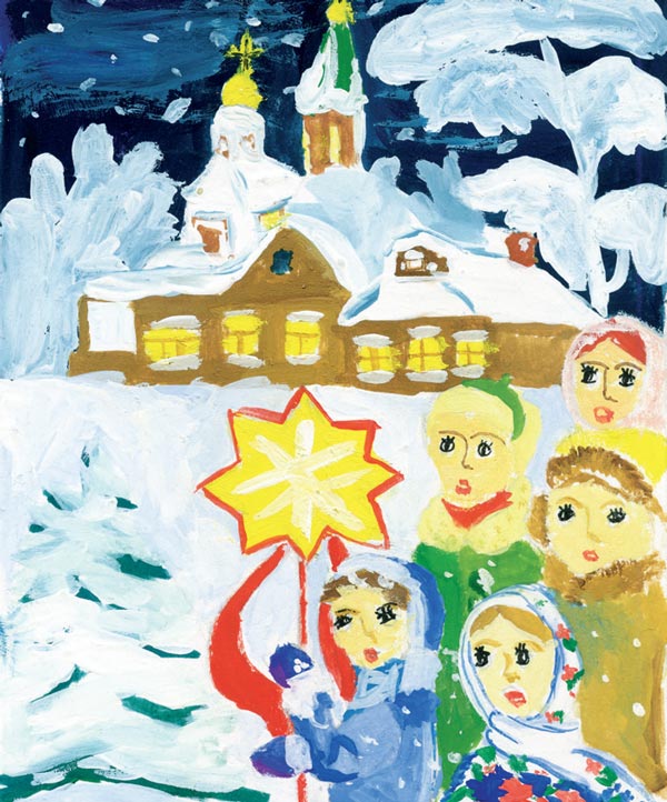 На Рождество мы всей семьей собираемся у бабули. Бабуля печет на праздник калачи и традиционное блюдо, которое называется «кутья». Кутья готовится из пшеницы, грецкого ореха, кедрового ореха, меда и мака, а потом все это заливается компотом из сухофруктов. А также мы дарим друг другу подарки!